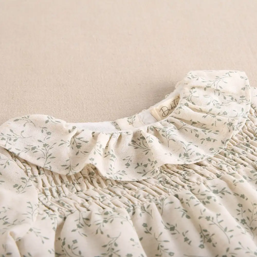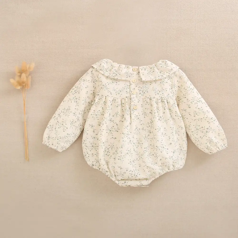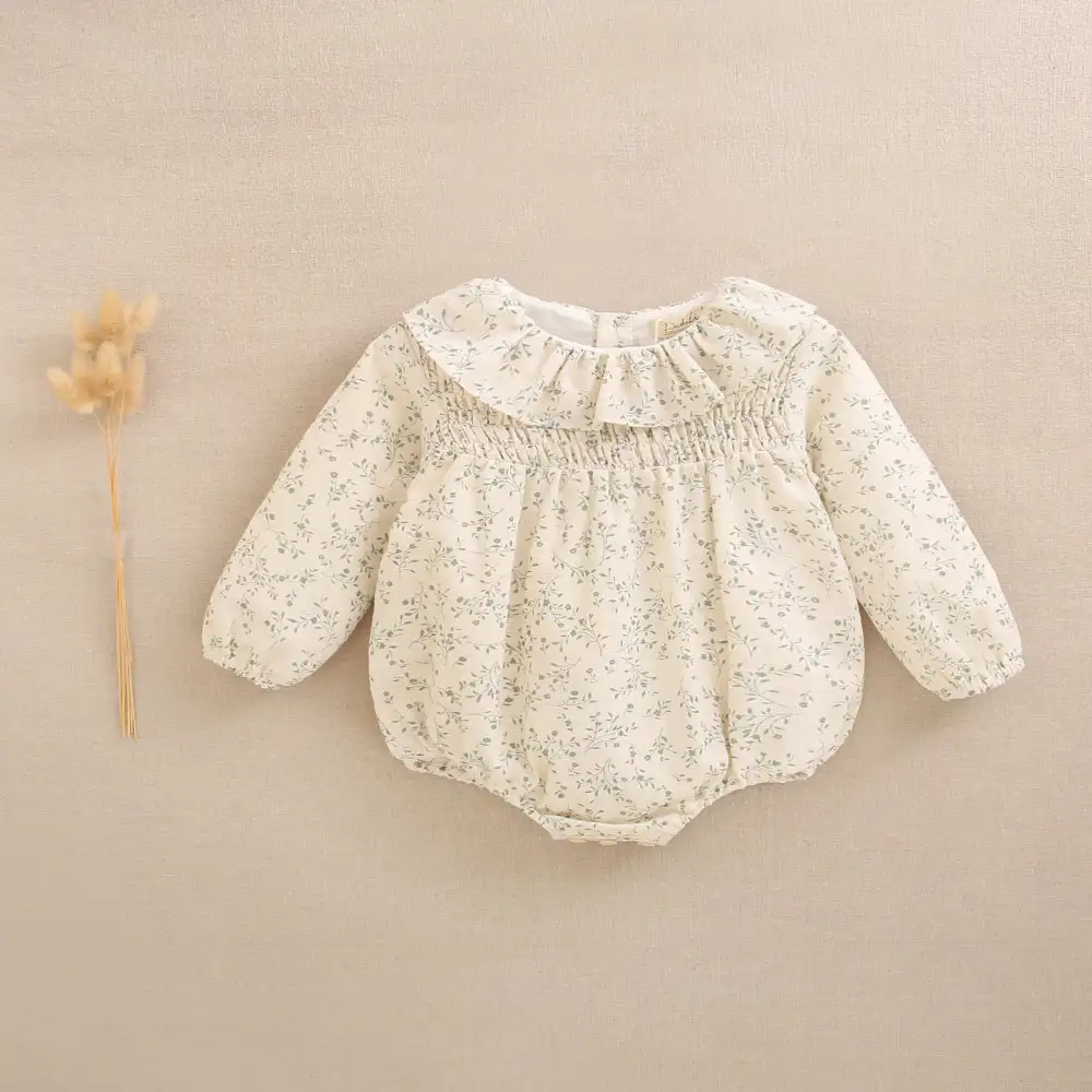 Ranita de bebé niña color crudo con estampado floral verde