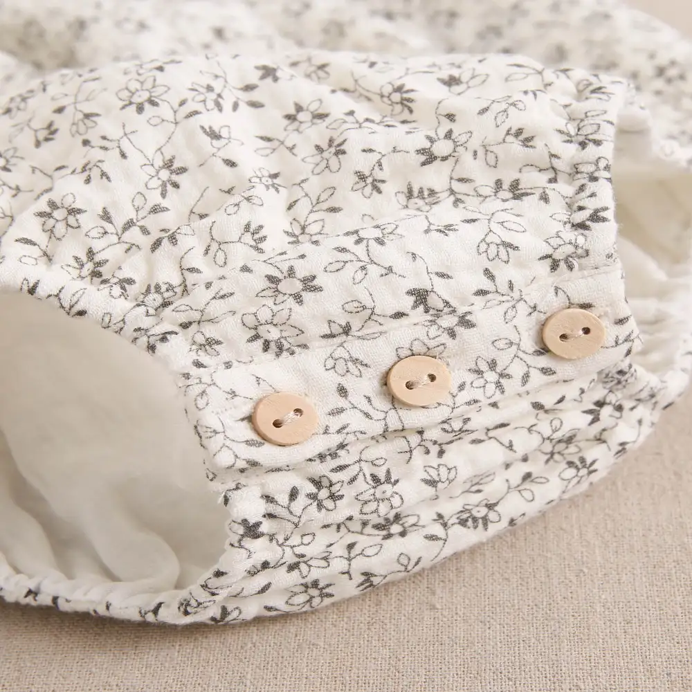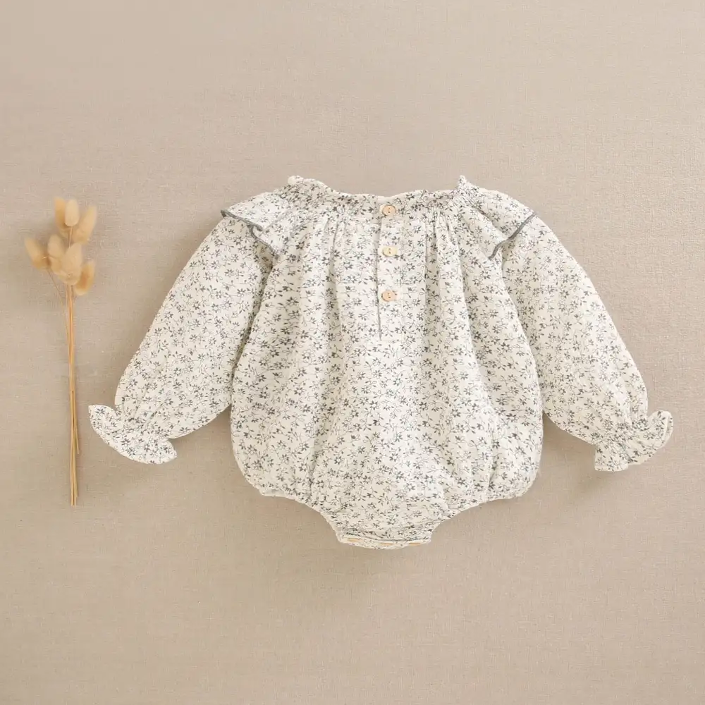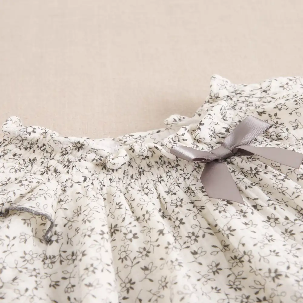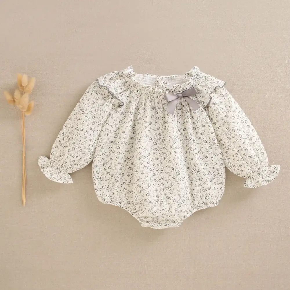 Ranita de bebé niña flores en blanco con detalle de lazo gris