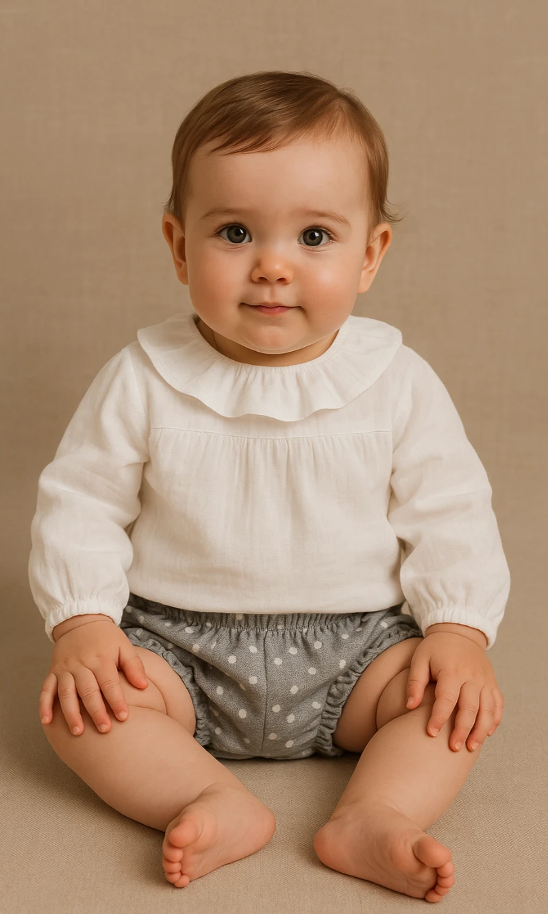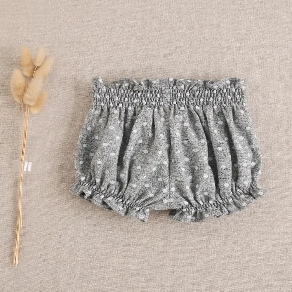 Short de bebé niña en gris jaspeado con topos